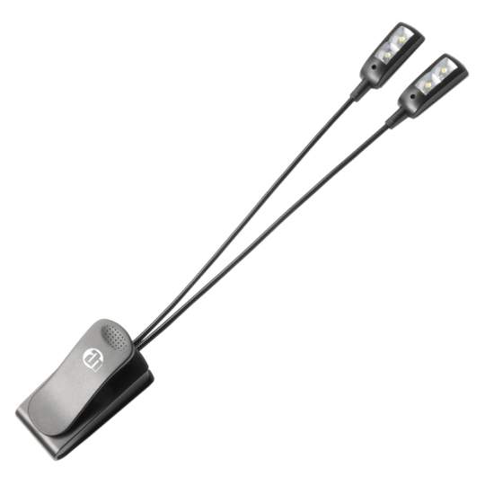 Die SLED2Pro ist eine sehr kompakte und handliche Notenpultleuchte mit geschütztem Design. Die 4 lichtstarken und effizienten LEDs sind in 2 Helligkeitsstufen einzeln schaltbar. Auch der Lichtkegel ist variabel einstellbar dank der flexiblen 220mm langen Schwanenhälse.
