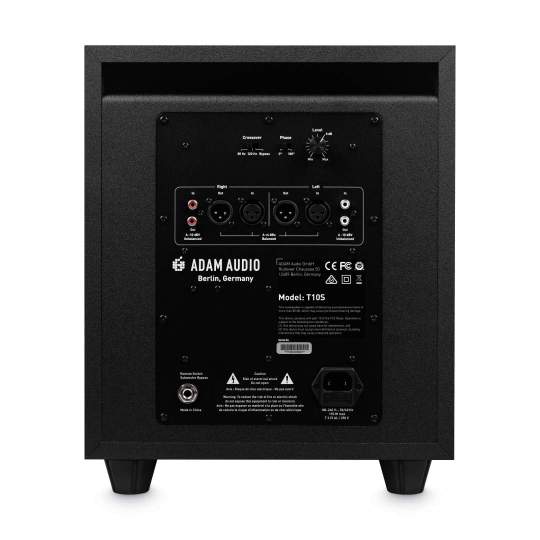 Ausgestattet mit einem nach unten gerichteten 10?-Tieftöner und einem souveränen 130 Watt Class-D-Verstärker, bietet der T10S einen Frequenzgang von 28 Hz bis 120 Hz und einen beeindruckenden maximalen Schallpegel von 104 dB SPL. Über ein einstellbares Tiefpassfilter kann das Basssignal an die Monitore angepasst werden, um das Optimum aus dem Gesamtsystem zu holen. Weitere Einstellungsmöglichkeiten auf der Rückseite des Subwoofers erlauben die Anpassung an die Raumakustik bzw. an die Satellitenlautsprecher.