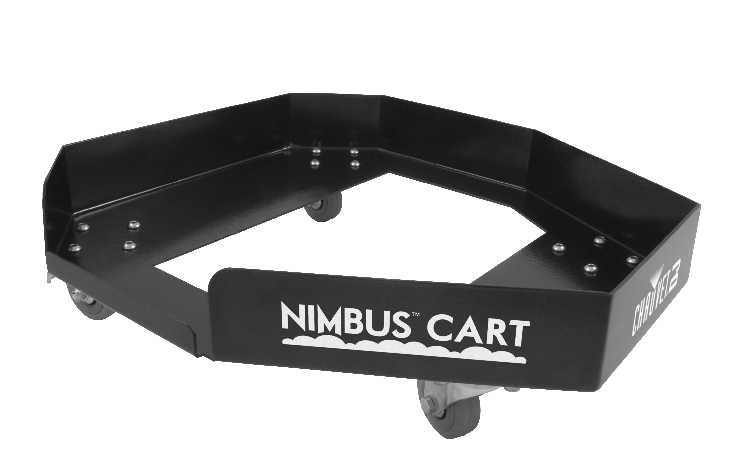 Mit dem Nimbus Cart lässt sich die Nimbus-Trockeneismaschine leicht vom Auto und zurück sowie über die Tanzfläche transportieren. Vier kräftige, kugelgelagerte Räder ermöglichen einen reibungslosen Transport. Die zwei Räder mit Feststellfunktion ermöglichen einen sicheren Halt der Nimbus.