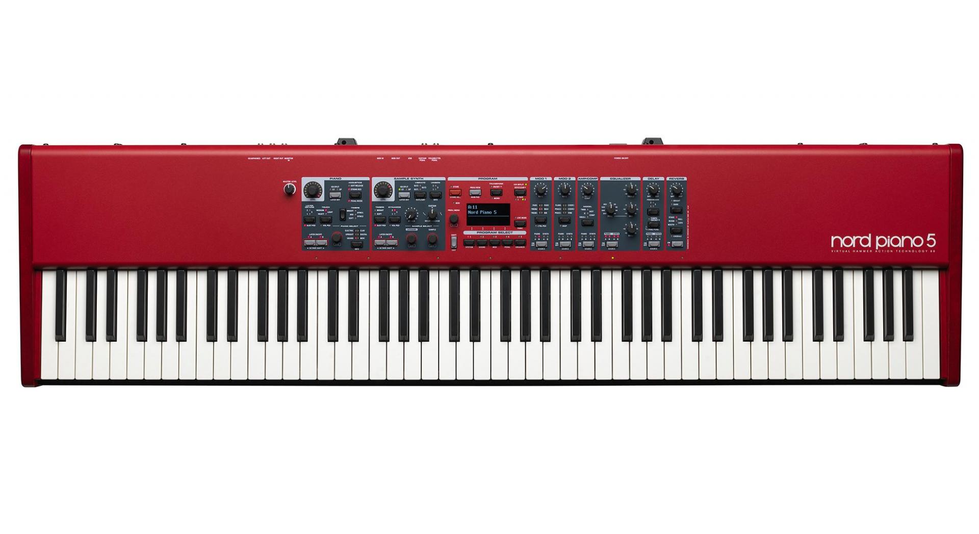 Das Nord Piano 5 wird mit einer beeindruckenden Sound-Auswahl aus 9 Flügeln, 9 Klavieren, 10 E-Pianos plus Clavinet, Digital-Pianos und Marimba sowie Vibraphon ausgeliefert. Weitere Pianos können kostenfrei unter www.nordkeyboards.com heruntergeladen werden.