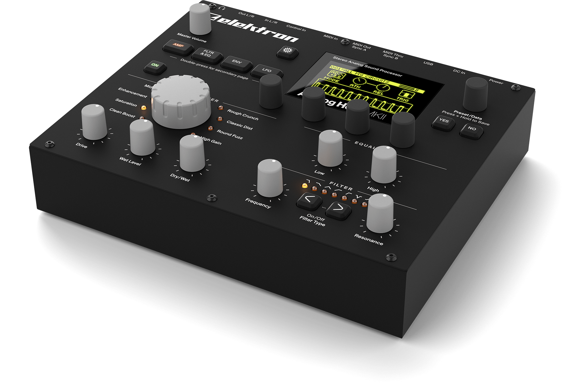 Die MKII-Version des Analog Heat zeichnet sich durch verbesserte Haltbarkeit und Präzisionsdrehgeber, neue robuste Tasten mit Hintergrundbeleuchtung und einen gestochen scharfen OLED-Bildschirm aus. Das Display ist größer, schärfer und heller: perfekt für den Einsatz im Dunkeln. Außerdem gibt es zusätzliches visuelles Feedback auf den Amp-, Filter-, Hüllkurven- und LFO-Seiten, was den Überblick und das Verständnis von Klangbearbeitung und Modulation erheblich erleichtert.