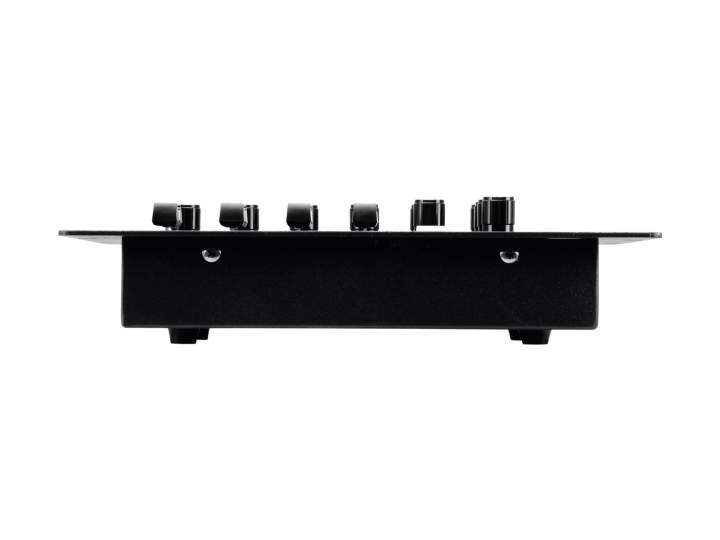 - Regler für Gesamthelligkeit, Ablauf- und Überblendgeschwindigkeit, und Stroboskop-Effekt