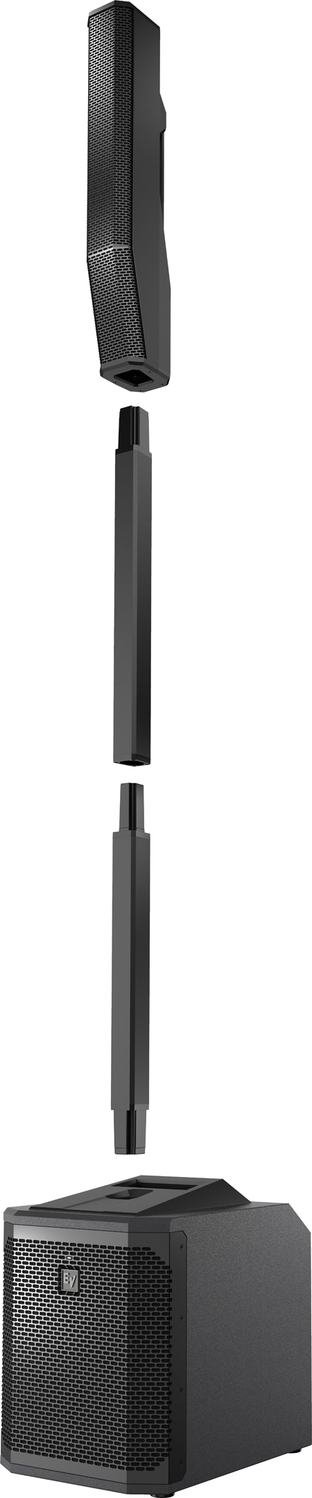 Das System umfasst ein Lautsprecherarray, einen zweiteiligen Polverbinder, eine Tragetasche für Array und Pole sowie einen aktiven Subwoofer - allesamt schnell zu verpacken und aufzubauen, auf der Bühne gut aussehend und widerstandsfähig.