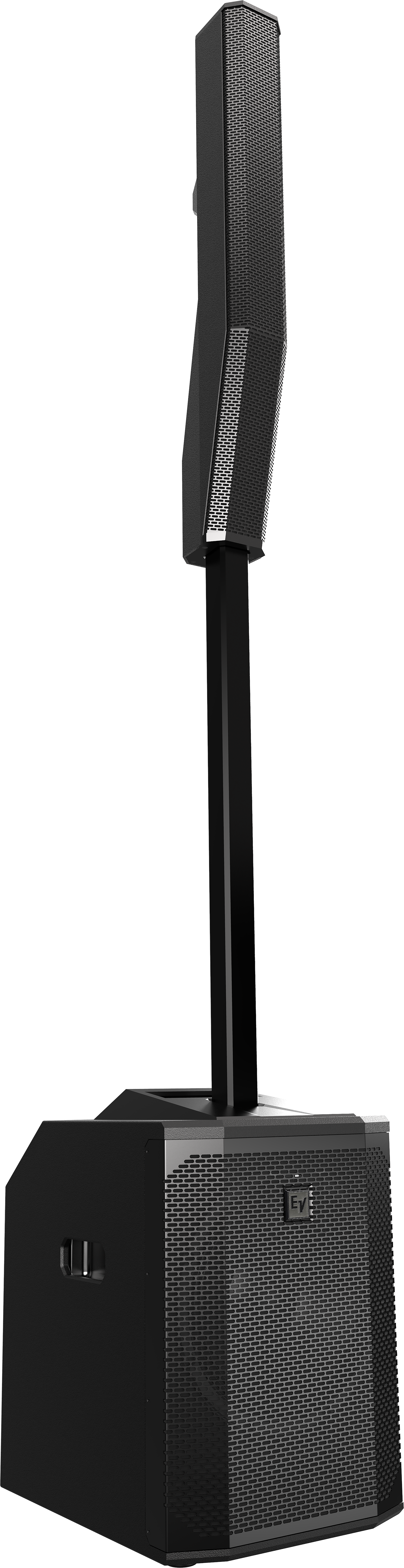 Acht 3,5-Zoll-Neodym-Treiber in der Säulenanordnung liefern zusammen mit dem 12-Zoll-Subwoofer bis zu 127 dB SPL. Die acht Komposit-Waveguides kontrollieren die hohen Frequenzen mit einem horizontalen Abstrahlwinkel von 120° und einem asymmetrischen (nach unten gerichteten) vertikalen Abstrahlwinkel von 40°, um eine angemessene Leistung für sitzende und stehende Zuhörer zu gewährleisten. Das Submast- und Säulen-Array wird in einer Tragetasche verpackt geliefert.