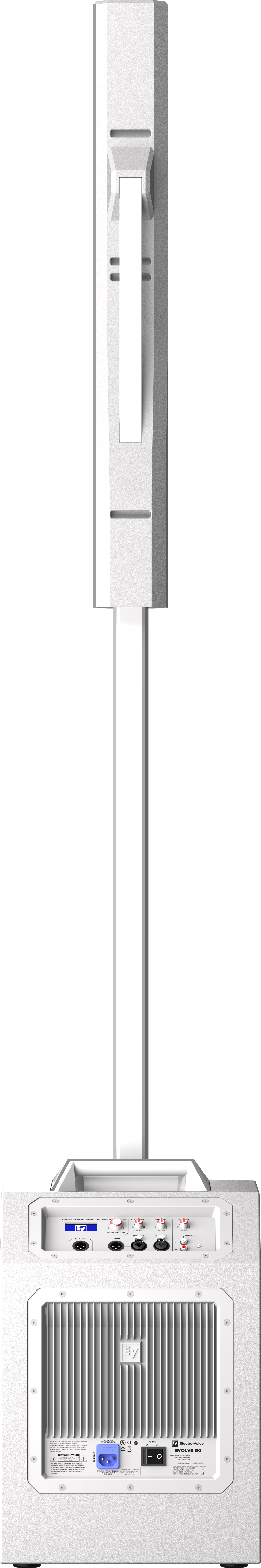 Das EVOLVE 50 Portable Column System ist ein Drei-Komponenten-Lautsprechersystem, das von einem 1000-Watt-Class-D-Verstärker angetrieben und von Electro-Voices QuickSmartDSP gesteuert wird.