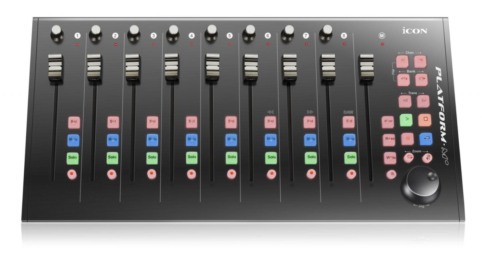 Übernehmen Sie die Kontrolle über Ihre Produktionen mit dem Platform M+ DAW Controller und fügen Sie Ihrer Digital Audio Workstation (DAW), Ihrem Digitalmixer oder Digitalrecorder echte taktile Steuerung über USB2.0 hinzu. Die Platform M+ ist eine MIDI-Bedienoberfläche, die für Produzenten, Ingenieure und Musiker entwickelt wurde, die die praktische Steuerung echter Fader auf einem Mischpult PLUS die Flexibilität moderner digitaler In-the-Box- oder Touchscreen-Musikproduktion in einem kleineren physischen Arbeitsbereich wünschen. Mit neun (9) motorisierten Fadern in voller Größe, acht (8) drehbaren Doppelfunktions-Encoder-Knöpfen, hintergrundbeleuchteten Tasten für Mute, Solo, Automation und Transportsteuerung, einem Jog-Wheel und Zugriff auf Ihren gesamten Mix durch Banking über Tracks in Gruppen 8 oder 1 Kanal gleichzeitig.