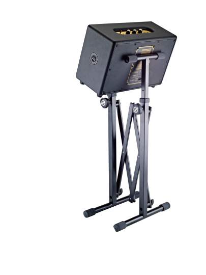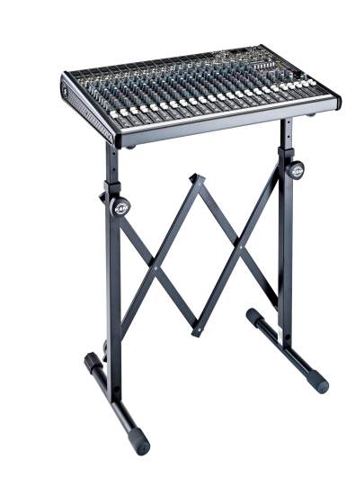 Praktischer Allrounder! Der Geräteständer 18826 ist vielseitig einsetzbar. Egal ob Mischpult, Monitor, Keyboard oder Verstärker, alle Geräte werden sicher und stabil gehalten. Der Aufbau erfolgt unkompliziert ganz ohne Werkzeug. Jedes Auflagerohr kann einzeln in der Höhe zwischen 595 mm und 1015 mm mittels bedienerfreundlichen Klemmschrauben eingestellt werden. Die beiden vorderen Gummiauflagen sind axial verschiebbar und können somit perfekt an die Breite des Gerätes angepasst werden. Das einfache Handling und das transportfreundliche Packmaß machen den Ständer zum idealen Reisebegleiter. K&M typisch sind die solide Verarbeitung und die langlebige Stahlkonstruktion.