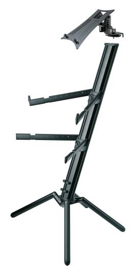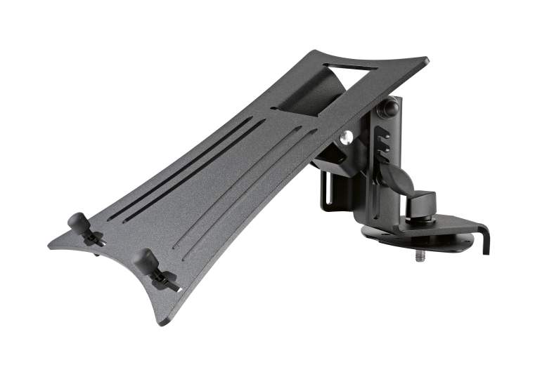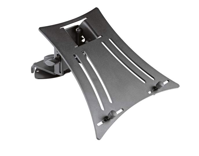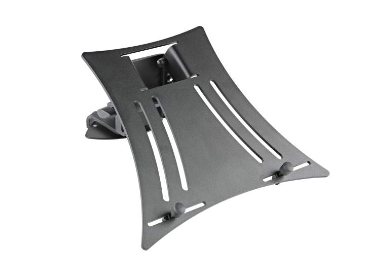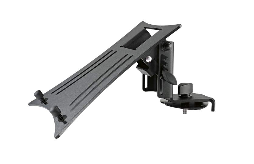 Formschöner Laptopaufsatz für den »»Spider Pro« und »Baby Spider Pro«. Der Laptopaufsatz wird mittels Flügelschraube und Halteplatte am oberen Ende des Keyboard Ständers »Spider Pro« oder »Baby Spider Pro« befestigt. Die Auflageplatte aus Aluminium kann waagerecht eingestellt bzw. in drei weiteren Positionen geneigt werden. Individuell einstellbare Anschlagstifte mit Gummikappen ermöglichen den Einsatz von allen gängigen Laptop-Modellen, Mixern, etc.