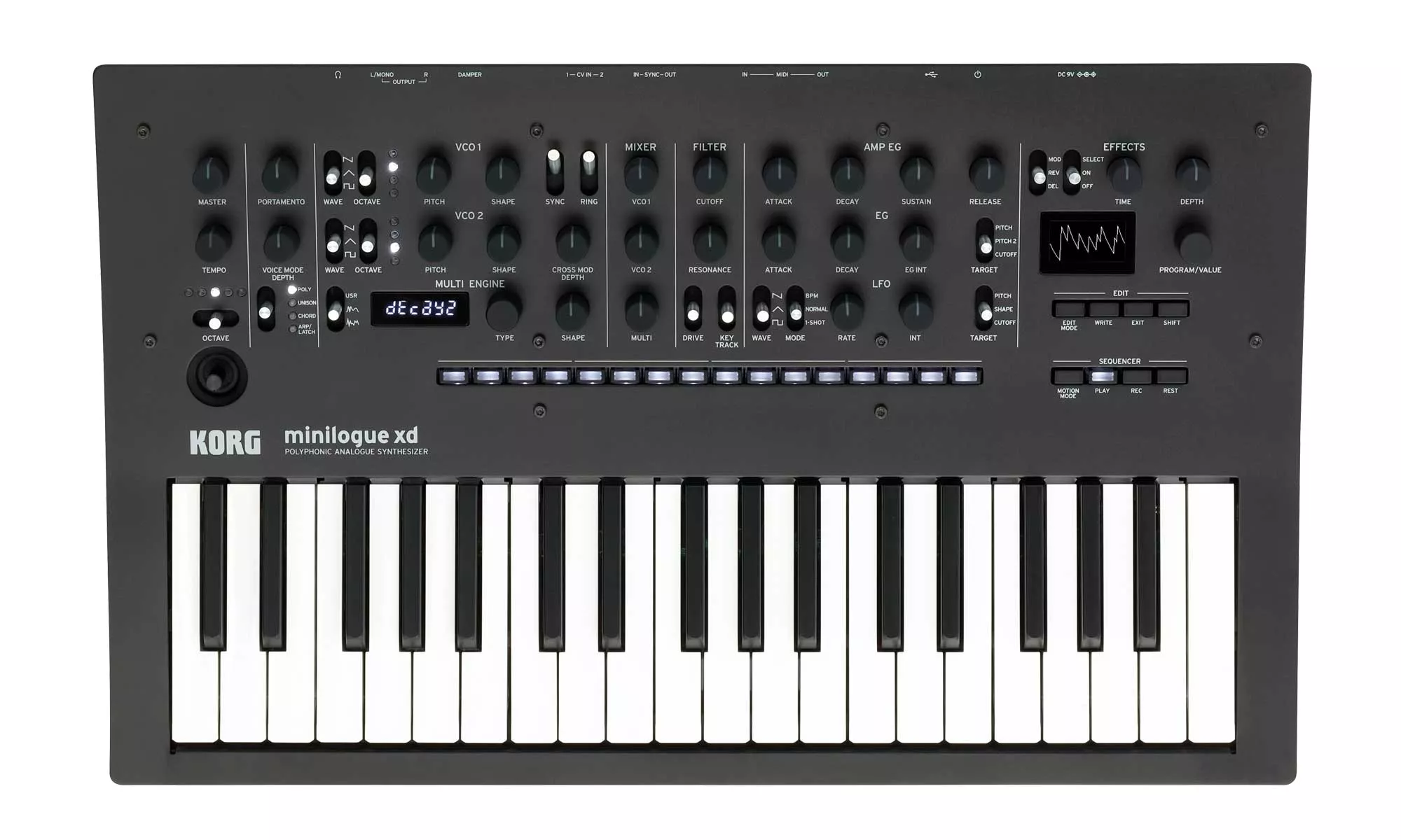 Zusätzlich zu der Möglichkeit, echt analoge Klänge zu erzeugen und in Echtzeit zu manipulieren bietet der minilogue xd auch noch eine digitale Multi-Engine, digitale Effekte, einen verbesserten Sequencer und Microtuning-Funktionalität, was die Möglichkeiten des Sounddesigns nochmals um ein Vielfaches erweitert.