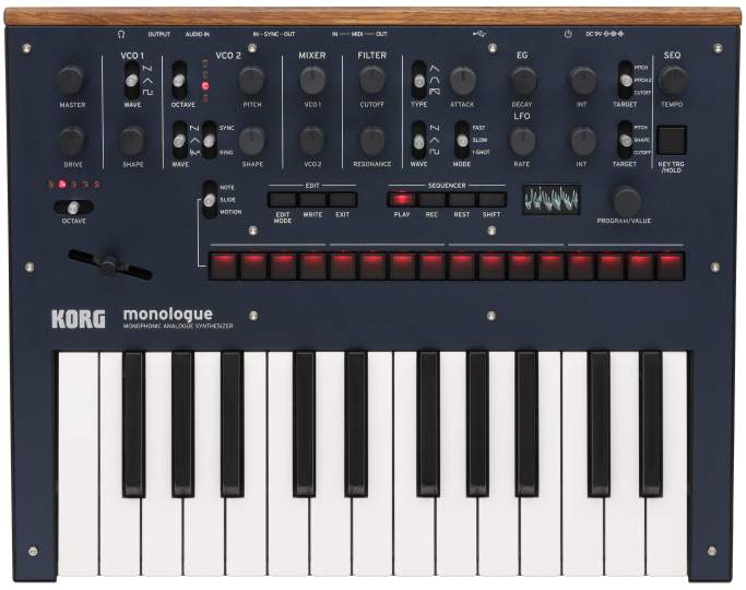 Obwohl der monologue mit schickem Layout, klarem Workflow und hochwertiger Konstruktion dem begehrten minilogue nacheifert, ist er ein eigenständiger Synth mit unverwechselbarem Sound, neuem Voicing und kreativer Klanggestaltung – und das zum Schnäppchenpreis. Filter, Modulation, Drive und LFO wurden neu entwickelt und können druckvolle Bässe und herausragende Leadstimmen oder andere fantastische Monosounds erzeugen, die alle Stärken seiner Single-Voice-Technik demonstrieren. Auch der Step Sequenzer wurde deutlich erweitert und lässt sich jetzt intuitiver und vielschichtiger editieren. Ein kompaktes und komplexes Instrument, dessen starke Persönlichkeit durch lebhafte Farbvariationen eindrucksvoll betont wird.