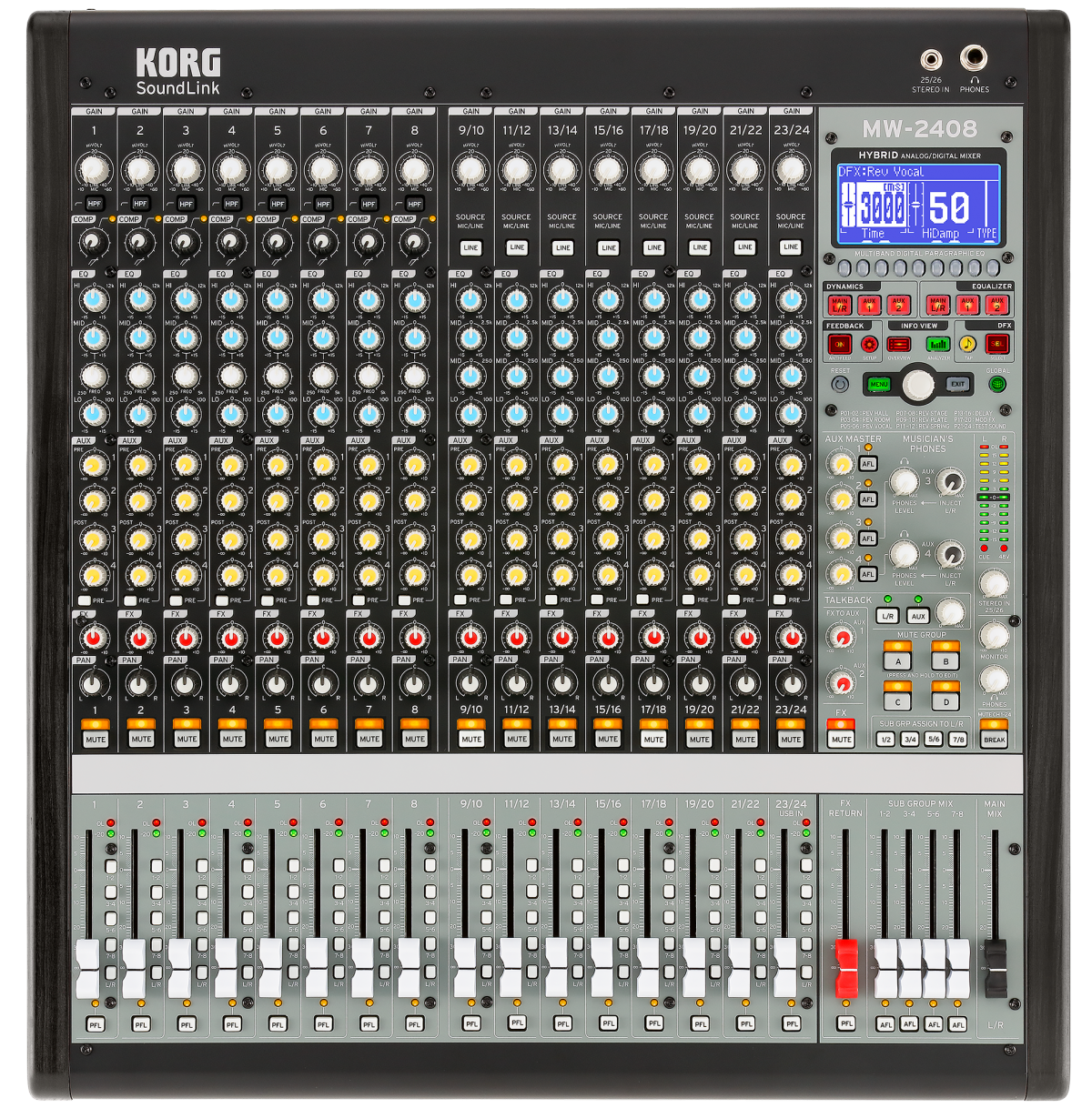 KORG hat sich mit zwei Koryphäen des Mixer-Designs - Greg Mackie und Peter Watts - für die Entwicklung von hybrid-analogen Mini-Konsolen zusammengetan, mit denen die Kombination aus gutem Sound und einfacher Bedienung zusammenkommen. Sowohl die 24- als auch die 16-Kanal-Ausführung bieten einen schnörkellosen, analogen Bedienkomfort, um live blitzschnell eingreifen zu können. Der Sound ist vollendet und die Zusatzfunktionen voll und ganz auf Musiker zugeschnitten. Die verwendete Digital-Technik ist ebenfalls vom Feinsten.