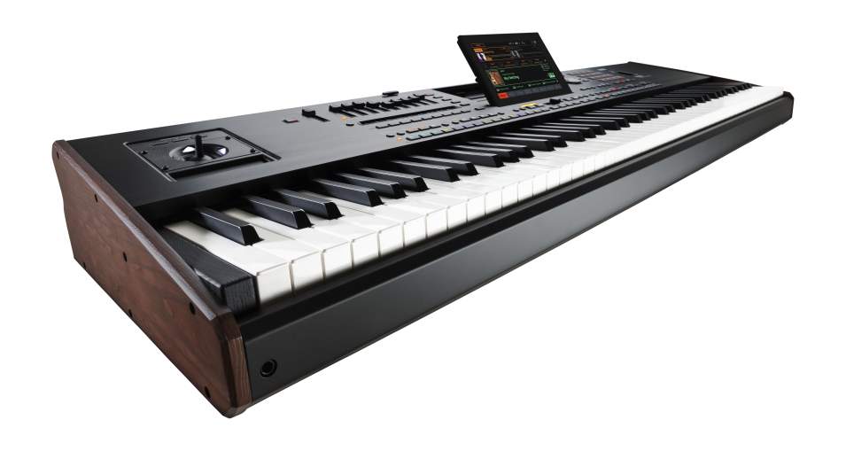 Ein leistungsstarker Mixer mit eingebautem Finalizer bringt alle Styles und Files auf ein gleiches Lautstärkeniveau. Eine große Akkord-Sequenz-Library lädt zum Jammen ein, das 8 Zoll große, neigbare Touch-Display in Tablet-Qualität bildet alle Akkorde, Texte und auch (Midifile-) Noten in hochauflösender Darstellung ab.