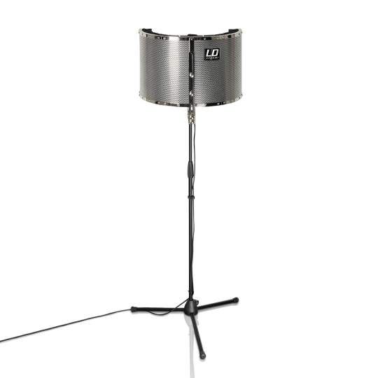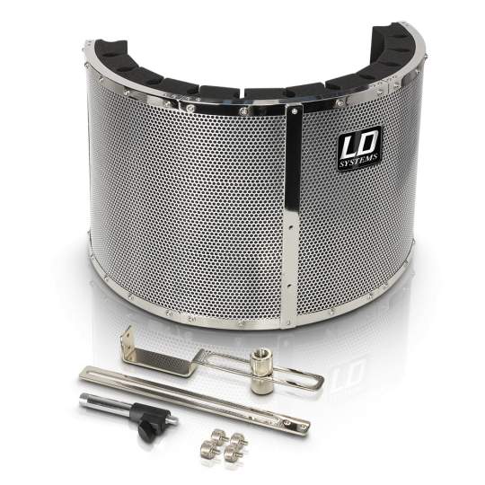 Der Reflexionsfilter LD Systems RF1 dient der Unterdrückung von unerwünschten Schallreflexionen, Nebengeräuschen, Raumhall und Echo, um eine möglichst "trockene" Aufnahme von Gesang/Sprache oder Instrumenten zu erzielen - für gute Aufnahmeergebnisse auch unter ungünstigen Umgebungsbedingungen ohne aufwendigen Studioausbau und akustische Dämmmaßnahmen. Die leichte, aber robuste Konstruktion mit hochwertigen Schallschutzmaterialien eignet sich zur Befestigung an allen handelsüblichen Mikrofonstativen.