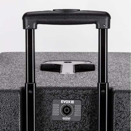 Als leistungsstärkste Säulen-PA ihrer Klasse gewährleistet das EVOX 12 dank der eingebauten 1400-Watt-Endstufe auch bei hohen Lautstärken eine äußerst souveräne und dynamische Wiedergabe. Der Satellit ist mit acht 4-Zoll-Neodym-Fullrange-Hochleistungslautsprechen mit Phase-Plug bestückt. Dies ermöglicht dem EVOX 12 eine deutlich kräftigere Wiedergabe der unteren Mitten bei konstantem Pegel und breiter Höhenabdeckung. Der 15-Zoll-Tieftöner liefert durchsetzungsstarke Bässe für die Party-Beschallung oder für die Bassdrum einer Liveband. Trotz der enormen Leistungsstärke ist das Gehäuse sehr kompakt und lässt sich Dank der integrierten Rollen und dem ausklappbaren Griff sehr leicht transportieren.