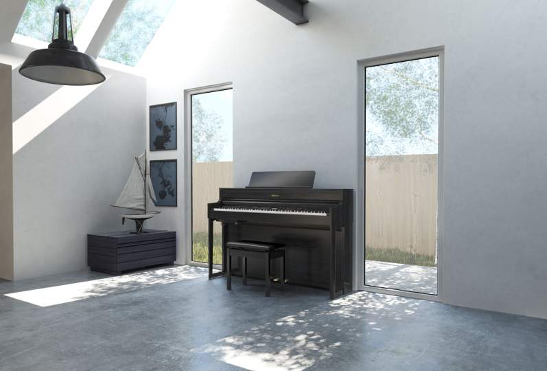 Neben dem Klang spielt auch die Optik eines Pianos eine gewichtige Rolle. Mit seinem großen und doch schlanken Gehäuse, seinen eleganten Vorderbeinen und der ausgefeilten Formensprache auf Basis des Designs der Roland LX-Flaggschiffserie zieht das HP704 Spieler in seinen Bann und lädt unweigerlich zum Spielen ein. Jede Oberfläche wurde sorgfältig ausgewählt und mit höchster Präzision gefertigt, damit sich das Piano in Ihrem Wohnraum wie zu Hause zu fühlt. Zudem wurde das Gehäuse darauf ausgelegt, an jeder Position im Raum einen exzellenten Sound zu gewährleisten. Das HP704 ist in den Ausführungen Ebenholz-Hochglanz, Anthrazit, dunkles Palisander, helle Eiche und Weiß erhältlich.