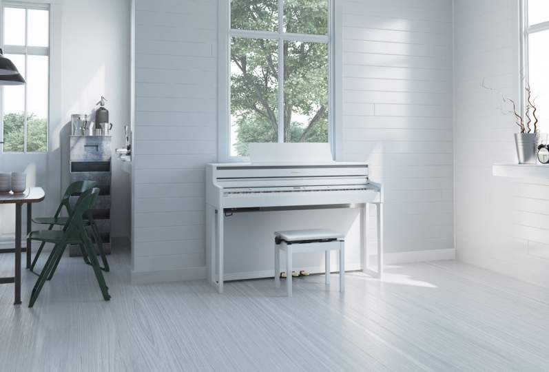 Neben dem Klang spielt auch die Optik eines Pianos eine gewichtige Rolle. Mit seinem großen und doch schlanken Gehäuse, seinen eleganten Vorderbeinen und der ausgefeilten Formensprache auf Basis des Designs der Roland LX-Flaggschiffserie zieht das HP704 Spieler in seinen Bann und lädt unweigerlich zum Spielen ein. Jede Oberfläche wurde sorgfältig ausgewählt und mit höchster Präzision gefertigt, damit sich das Piano in Ihrem Wohnraum wie zu Hause zu fühlt. Zudem wurde das Gehäuse darauf ausgelegt, an jeder Position im Raum einen exzellenten Sound zu gewährleisten. Das HP704 ist in den Ausführungen Ebenholz-Hochglanz, Anthrazit, dunkles Palisander, helle Eiche und Weiß erhältlich.