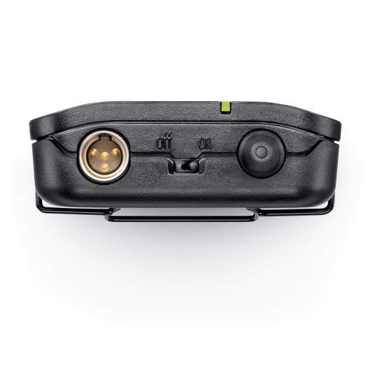 Der Taschensender ist im Lieferumfang der analogen BLX und BLX-R Funksysteme enthalten und wird mit 2 AA Batterien betrieben. Die Batterielaufzeit beträgt bis zu 14 Stunden und die Reichweite bis zu 100 Meter.