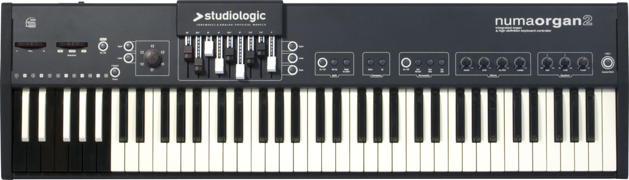 Controller: 2x Transpose controls , 3x Output volume / EQ knobs , 3x Percussion buttons , 3x Split controls , 4x Effect knobs , 9x Drawbars , Chorus / Vibrato knob , Dynamic touch / [MIDI] button , Pitch bend wheel , Preset / Sound button , Rotary / Modulation wheel